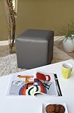 POUF CARRE GRIS - Type de revêtement : Polyuréthane - Composition : Bois massif - Coloris : Gris - Nombre de pieds : 4 - A visser - Composition des pieds : : plastique - Couleurs pieds : Noir